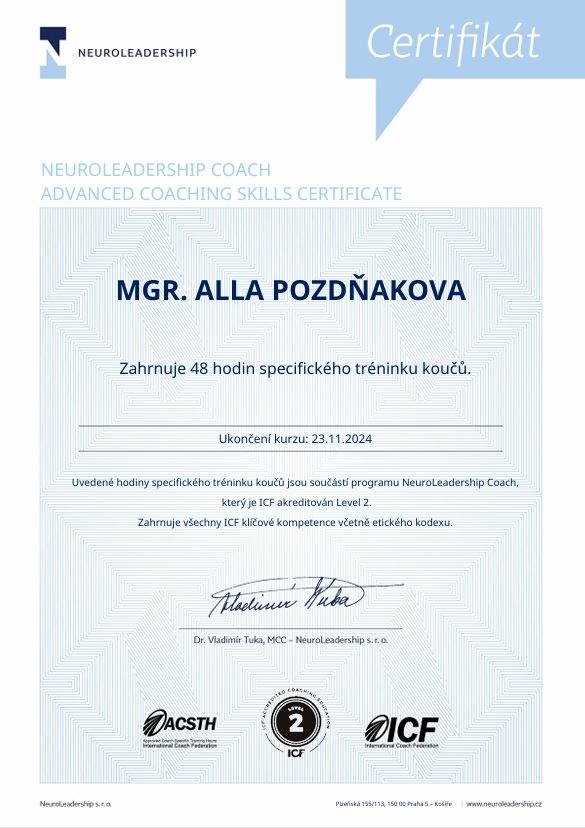 Certifikát Neuroleadership Systemic coaching